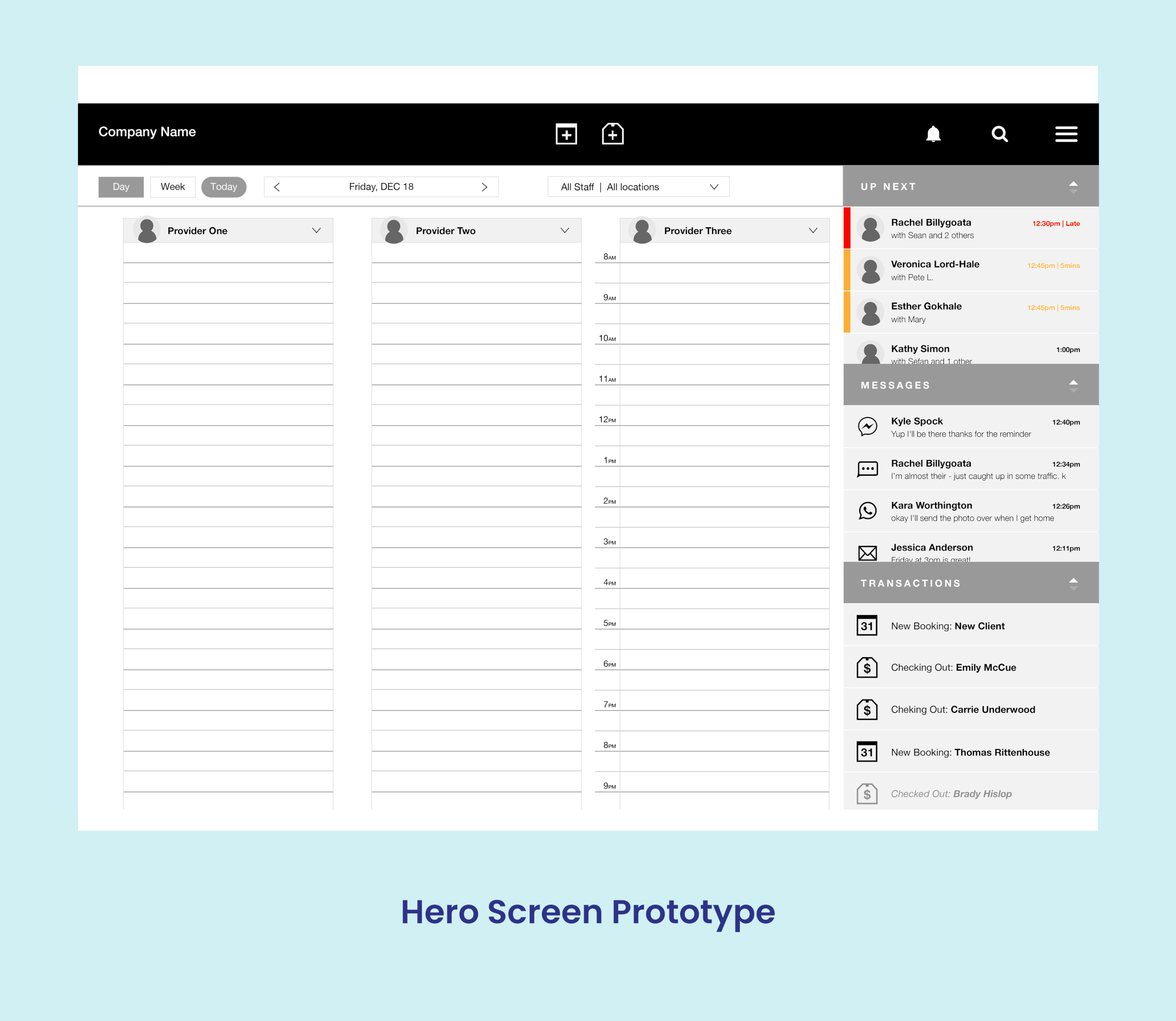 Users spend more than 75% of their time in-app in the calendar and checkout process, so getting the UI/UX of the hero screen was critical – from identifying the happy path to planning for all the edges cases. We designed this workflow, knowing that key users need to multitask during scheduling, so having the calendar remain persistent was essential. The resulting interface is purposefully uncluttered and designed for ease-of-use.